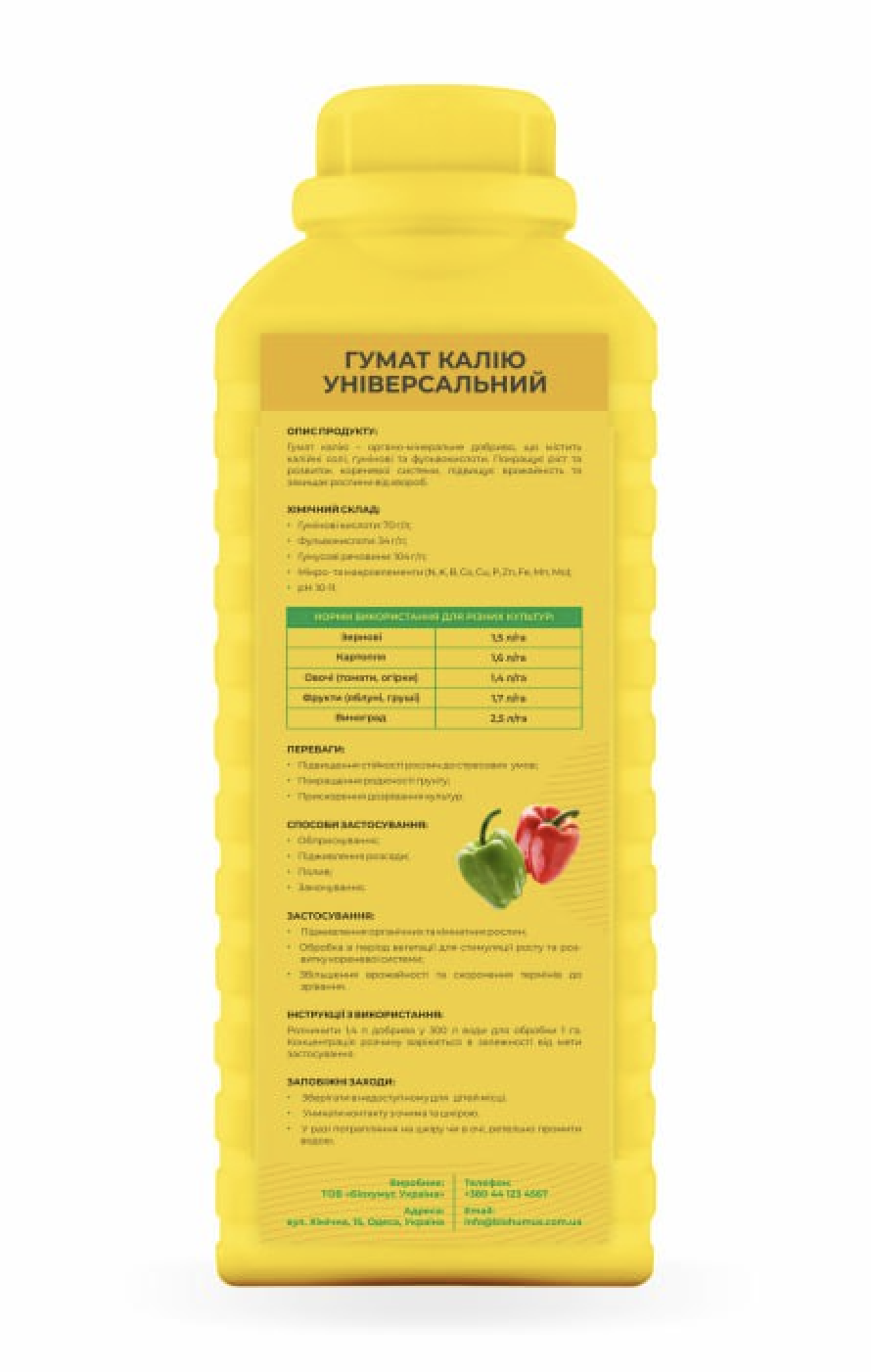Гумат Калiю BioHumus — це природне джерело сили для ваших культур. Його регулярне застосування гарантує стабільний урожай, міцні та здорові рослини, а також родючий ґрунт на довгі роки.
