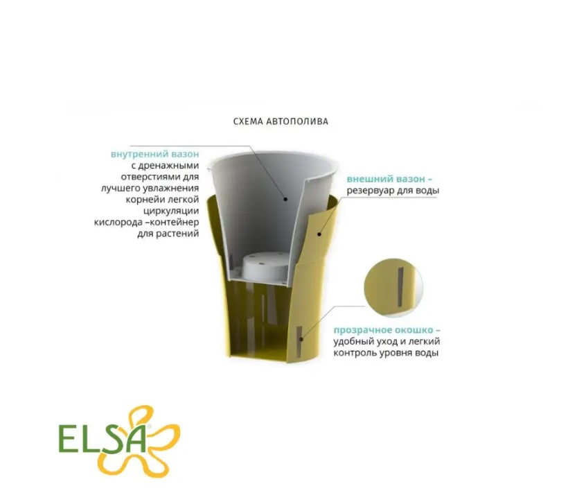 Виробник Senator Країна Ukraine Высота 125 Диаметр 145 Материал Пластик Назначение Для комнатных растений Объем 1.25 Популярні товариОписГорщики з автополівом купити й у кімнатних рослин будуть вбудовані функції для догляду. Подвійний горщик Dali складається з 2 частин: Внутрішня. Для садіння рослини має дренажні отвори, які призначені для обміну повітря й через них проходить зайва вода. Зовнішня. Лицьова частина горщика, яка має привабливий дизайн і форму, що є зручно у використанні, а глянсові ніжні відтінки мають оригінальність. Лицьова частина горщика має контрольне вікно, щоб відстежити час поливу. Розумний квітковий горщик має функції: Автополив. На дно горщика відходить зайва вода у вікно, де здійснюється контроль рівня води, а потім рослина отримує через дренажні отвори воду на корені з випаровуванням. Автополивання вистачає до 2 тижнів, у тому разі, якщо вікно заповнене водою. Дренажна система. Функція дренажних отворів відіграє важливу роль у усуненні захворювань рослини, як-от: гниття, грибок, проблеми з ґрунтом — завдяки потраплянню повітря. Розумні горщики для квітів відіграють важливу роль у життєдіяльності кімнатних рослин, для їхнього здоров'я та розвитку. Розміри: 14,5х12,5 см Об'єм: 1,25 л