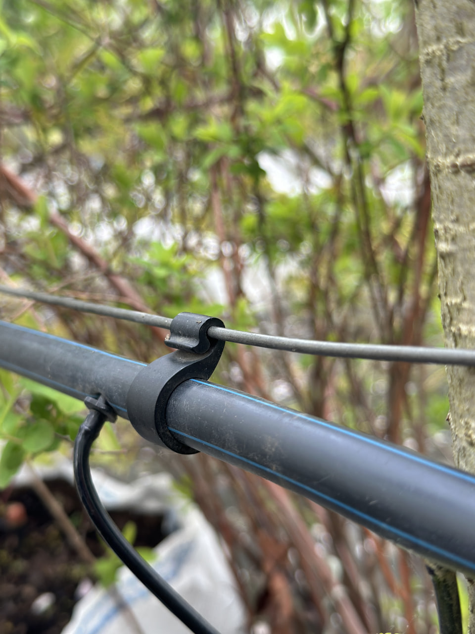 - Натягнути несучий дріт або шпалерний прут по ходу рядів рослин;