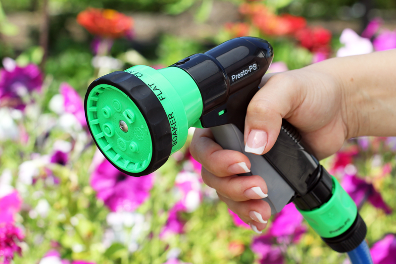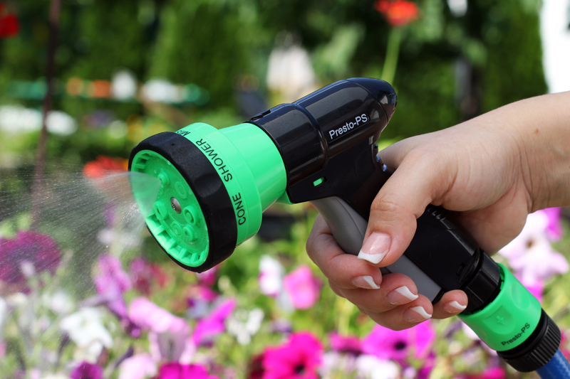 Пістолет для поливу Presto-PS (2048N) використовується для ручного поливу газонів середньої та невеликої площі, городів, квітників, прибирання доріжок на прибудинковій території, миття садового інвентарю та техніки. Поворотна голівка пістолета має 7 положень і регулює форму струменя і ступінь розпилення води. Можливі режими поливу: жорсткий струмінь, дрібні струмені, проливний дощ, душ, туман, плоский горизонтальний, конус. Підключається до садових шлангів діаметром 1/2, 5/8 і 3/4 дюйма за допомогою стандартних конекторів. Рекомендований робочий тиск у системі від 2 до 4 атмосфер. Виготовлений поливальний пістолет з якісного пластику, довговічний, стійкий до механічних пошкоджень, впливу ультрафіолету і водорозчинних добрив.