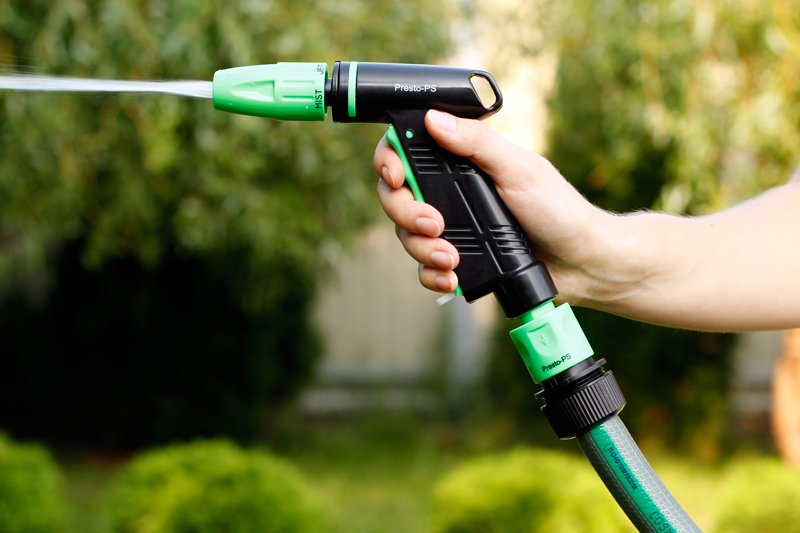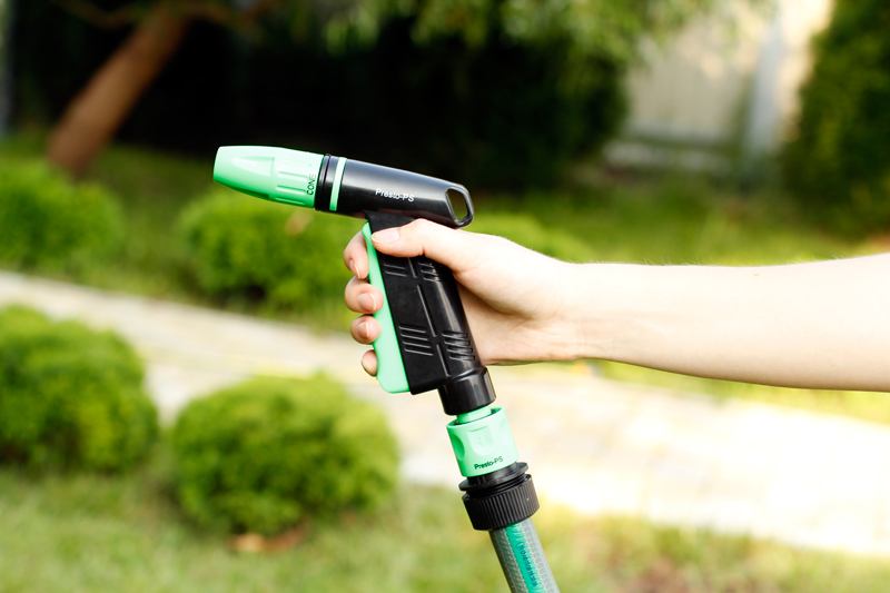Пістолет для поливу Presto-PS (2101) використовується для ручного поливу газонів середньої та невеликої площі, городів, квітників, прибирання доріжок на прибудинковій території, миття садового інвентарю та техніки. Поворотна головка пістолета має 3 положення і регулює форму струменя і ступінь розпилення води. Можливі режими поливу: жорсткий струмінь, конус, туман. Підключається до садових шлангів діаметром 1/2, 5/8 і 3/4 дюйма за допомогою стандартних конекторів. Рекомендований робочий тиск у системі від 2 до 4 атмосфер. Виготовлений поливальний пістолет з якісного пластику, довговічний, стійкий до механічних пошкоджень, впливу ультрафіолету і водорозчинних добрив.