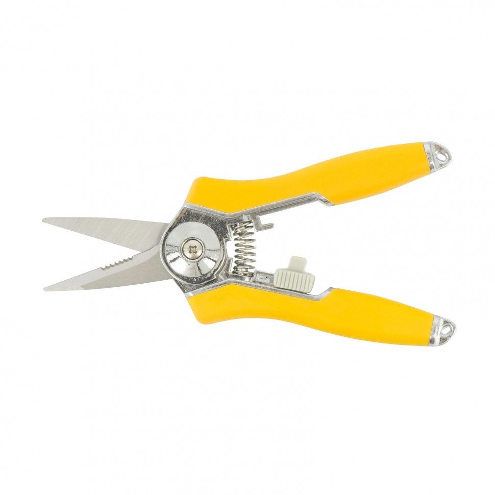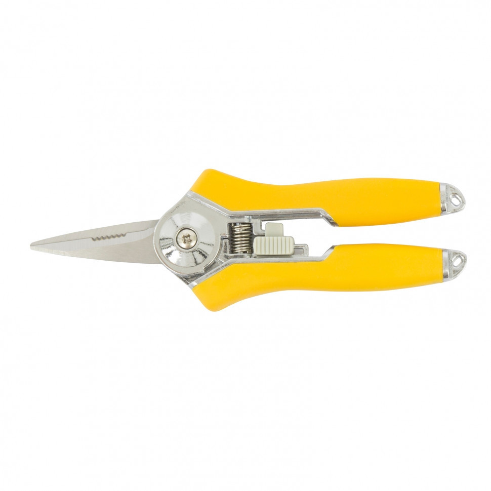 ХарактеристикиПроизводитель А-маркет Страна Ukraine Тип инструмента Садовые секаторы Форма лезвия Прямая Материал рукоятки Металл Состояние Новое Популярные товарыОписаниеСекатор для роз и цветочных кустов оснащен боковым фиксатором. Резиновые металлические ручки имеют антискользящий эффект, что гарантирует удобное положение пальцев во время работы. Остро заточенное лезвие с тефлоновым покрытием предотвращает образование коррозии. Закаленная сталь заточена с двух сторон и быстро справляется с обрезкой твердых побегов.