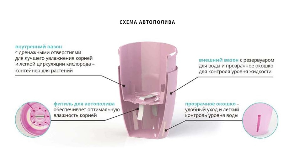 Производитель Senator Страна Ukraine Высота 170 Диаметр 140 Материал Пластик Назначение Для комнатных растений Объем 2 Состояние Новое Тип Система автополива Форма Круглая Цвет Розовый Дополнительные характеристики Есть автополив Размер Средние Установка Напольная|Настольная -